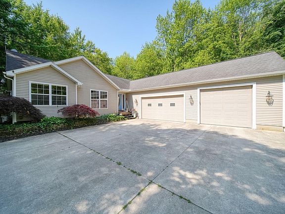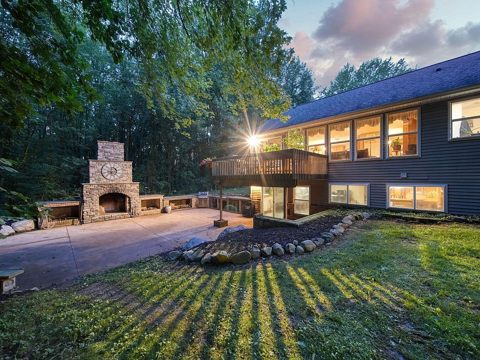 Experience the perfect balance of privacy and convenience on this 5.4 acre estate-size lot surrounded by woods and wildlife. This custom walkout ranch features an open floor plan with direct access to a stunning outdoor kitchen and fireplace, ideal for year-round entertaining. The lower-level walkout includes a pool table and a full-service bar, making it the ultimate gathering space. Additional highlights include