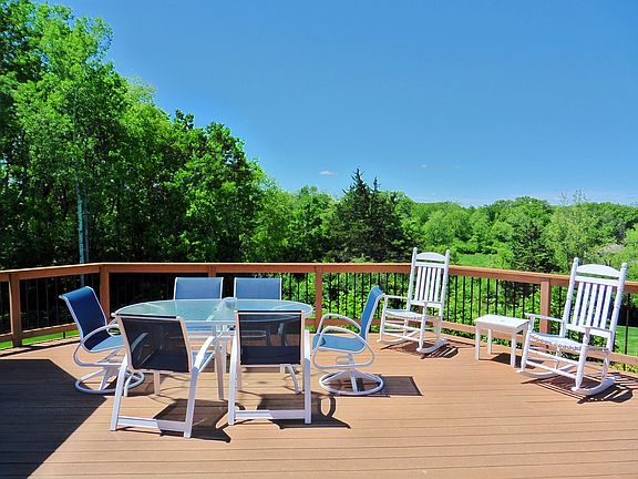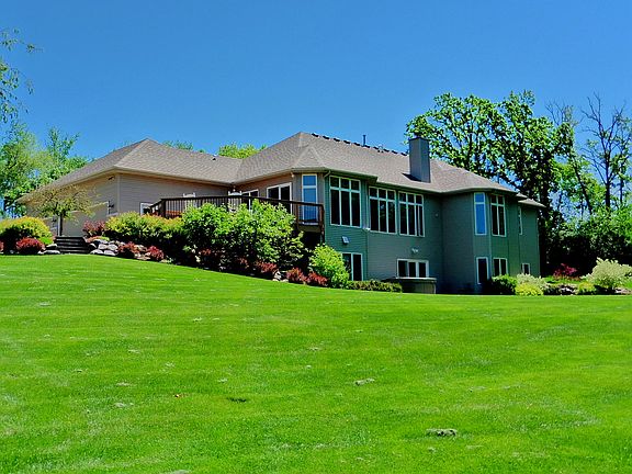 Priced $100,000 below assessment! Unbelievable views and privacy. Executive ranch on 6 point 7 acres. Spacious open rooms with tons of natural light. Gourmet kitchen with Wolf gas cook top, double oven, island & granite tops. Master suite with tray ceiling, fireplace, jetted tub, glass shower and walk in closet. Walk out lower level perfect for entertaining, wet bar, game room, exercise room and office. Second deetached garage for all of your toys. Security system.