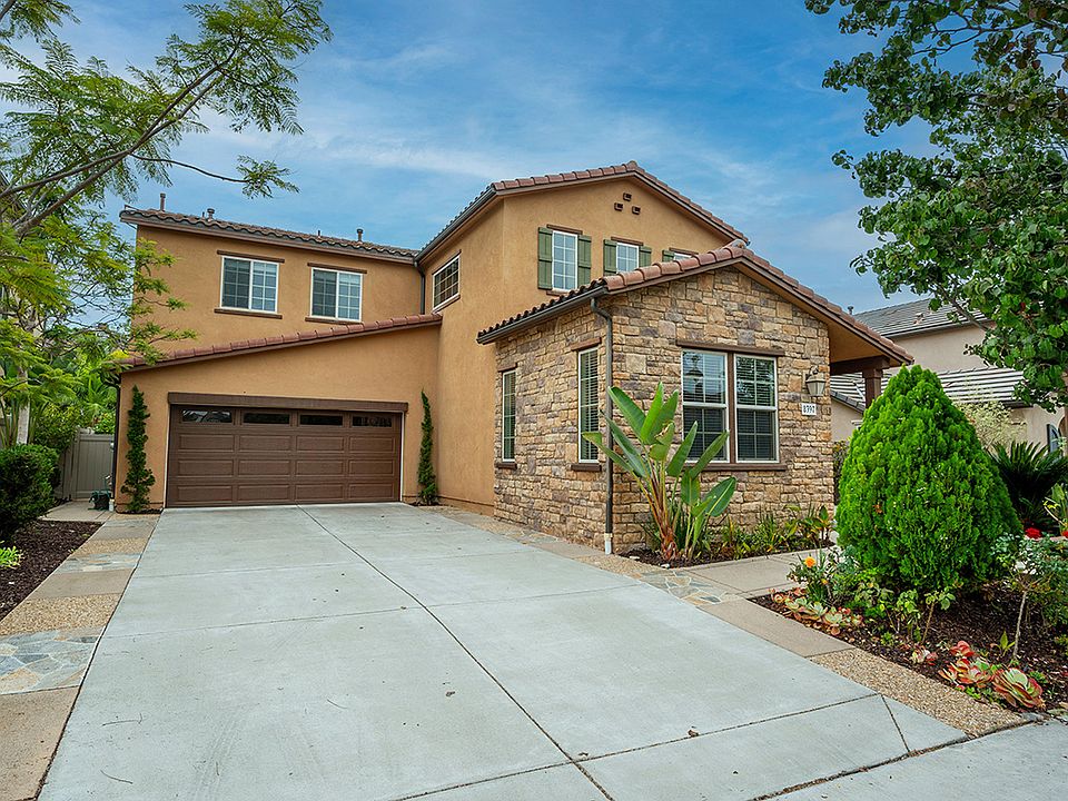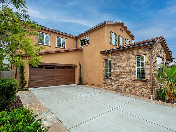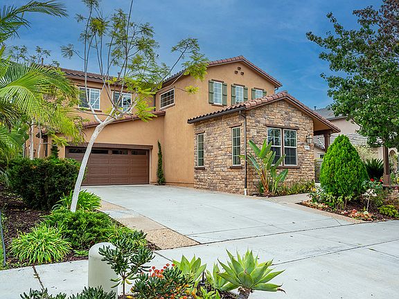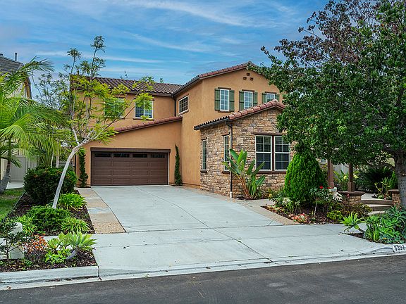 Freshly painted interior in your Terrific Terramar home featuring 5 bedrooms and 3.5 bathrooms, including two rooms downstairs - one office/guest room facing the front of the home and a generous sized primary ensuite. Home is equipped with solar and 240 amp EV charger outlet! Upon entry you are greeted with soaring volume ceilings in your grand living room. Seamless flow to your Chef's kitchen featuring granite countertops, stainless steel appliances, and large center island with an open concept floor plan to your formal dining and family rooms. Private and spacious rear yard perfect for entertaining and relaxing. Upstairs features an inviting loft/second family room. Main primary bedroom upstairs with a large walk-in closet, separate walk-in shower and soaking tub, and dual sinks/vanities. Two other secondary bedrooms on your second floor sharing a hall bathroom with dual sinks and tub/shower combo. Upstairs full sized laundry room with service sink and storage. Two car attached garage with epoxy flooring. Home features water softener system, crown moulding throughing, brazilian rosewood hardwood floors (no carpet), lush fruit trees. Located in the highly sought after Poway Unified School District within short distance to Westview High School and Mesa Verde Middle School and zoned for Adobe Bluffs Elementary. Nearby many hiking and biking trails at Black Mountain and Penasquitos Canyon, local shopping centers with restaurants, banking, and more, freeways 56, 15, and 5/805 bypass. This is a must see!