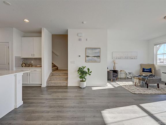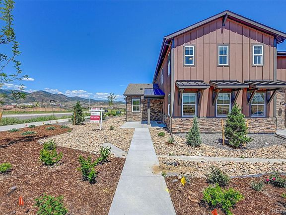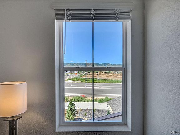Brand new townhome with TWO primary bedroom suites (built in June 2022) in Prospect Village at Sterling Ranch! A new build without the wait time! This end unit townhome located on an "Icon" corner lot has breathtaking mountain views that you can see from the bedroom window and an extended covered patio. This spacious home has 2,358 finished square feet with 9' ceilings on the main level. Walking into an open floor plan, with luxury laminate flooring, where your kitchen, dining and great room flow perfectly for entertaining. A stylish kitchen with 42” white cabinets, soft close drawers, quartz countertops, center island, full tile backsplash, stainless steel stove hood, upgraded stainless steel appliances with 36" gas cooktop, microwave, oven, large single basin drop in sink with luxury facet, and a Samsung Bespoke refrigerator, and a separate coffee bar next to the pantry. All appliances are included with a transferable warranty! Beautiful main level master suite with a full bathroom and walk in closet. Second level has another master suite bedroom with 5 piece bath, including an upgraded shower with a second rainfall shower head. This bedroom also has and two oversized walk-in closets. Across the hall you will find two more bedrooms with another full bath, as well as the spacious laundry room. This home has 14 solar panels already installed with a transferable lease to minimize future electric bills. Explore two nearby state parks, Downtown Littleton's growing restaurant scene, local breweries, amazing community amenities, or access the 30 miles of trails nearby. Quick possession!