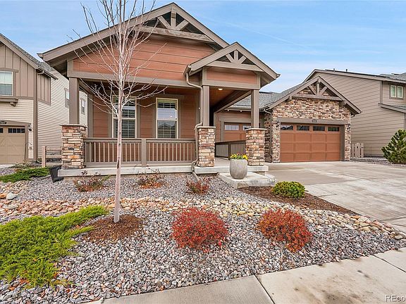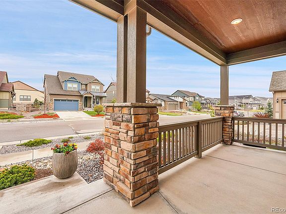 Masterful design meets exceptional intention in this one-of-a-kind home in Sterling Ranch! This 5,000+ sqft ranch offers elevated touches and impressive upgrades sure to excite the most discerning buyer. Eleven-foot coffered ceilings welcome you to the home as Anderson Tuftex hardwood floors set the stage for style and sustainability. Benjamin Moore paint in shades of Pale Oak and Dove White combine with custom Hunter Douglass plantation shutters to add comfort and sophistication throughout. Host a posh party in the formal dining room or enjoy a casual meal around the oversized island. Featuring quartz countertops, stainless steel GE appliances and a generous eat-in area, the kitchen is a chef’s paradise and an entertainer’s dream. A custom floor-to-ceiling Navajo travertine fireplace with a live-edge walnut mantel is the focal point of the inviting living space, where an elevated cozy atmosphere creates the perfect backdrop for gatherings large and small. The primary suite is a peaceful haven, boasting 10-ft tray ceilings and a wall of bright windows filled with western sunlight. A spa-like oasis, the primary 5-piece bath basks in details of quartz and custom tile. A main-level laundry room offers easy access to the primary closet and custom mudroom. The enviable 3-car garage features extended depth, EV charging, and epoxy flooring. Primed for indoor-outdoor living, a two-layer deck offers an outdoor dining room with gas hookups fit for a grilling guru. A gas firepit welcomes evenings spent under the stars in the fully fenced backyard. Enjoy life in Sterling Ranch with a resort-style clubhouse, gym, pool, splash pad, and more! Start your day at Atlas Coffee or unwind at Living the Dream Brewery. Grab a bite from the food trucks that frequent Sterling Center. With 1,300 acres of open space and 30+ miles of trails, life in Sterling Ranch is uniquely refreshing and unquestionably Colorado. Furniture in home is available for purchase.