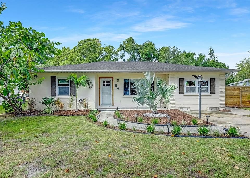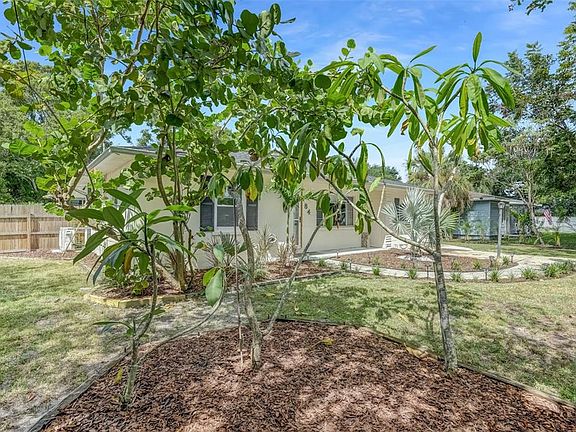 Old Florida Charm Three bedroom pool home on an oversized large lot. A large in ground pool large yard with Privacy fence and a 12x14 shed on a concrete slab. Kitchen features solid wood cabinets, a cooking island, breakfast bar, and plenty of countertop space. Family room which boasts hardwood floors and a wood burning fireplace. The third bedroom is currently being used as an office but could easily be utilized as a functional bedroom that already has its own closet. New roof 9/24 - AC system 7/23 - pool pump 3/25 - Many of the windows have been upgraded to impact glass. High and dry location no flood insurance "required". Located on a quiet cul-de-sac that ends at the beautiful East Bay Golf Course.