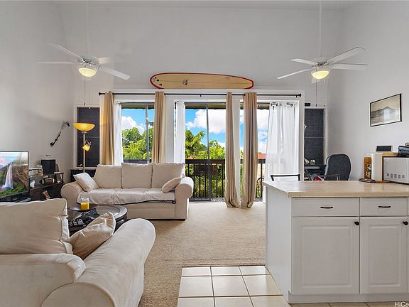 Experience island living at its best in this beautifully laid out 2-bedroom, top-floor unit at Makaha Valley Plantations. Soaring vaulted ceilings create an open and airy feel, while the renovated bathroom adds a modern touch. Enjoy sweeping views of the ocean and coastline from your private lanai- the perfect spot to unwind after a work or beach day. Nestled in a gated community with resort-style amenities including pools, jacuzzies, tennis & basketball courts, and BBRQ areas; this lushly landscaped property is also home to charming peacocks that roam the grounds. Just minutes from world -famous Makaha Beach, hiking trails, and gold, this is the peaceful west side retreat you've been waiting for.