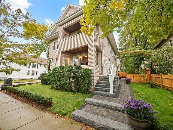 Harvard Lawn, Belmont. 2-family offering class, convenience, and comfort in this meticulously updated home. The 2nd & 3rd floor unit has 4 beds, 2 baths, 2 private porches (1 is 3-season, perfect for plants & play), and skylights, plus a large cathedral-ceiling attic space for expansion or storage. The 1st floor unit is 2 beds, 1 bath. Both units feature central AC, refinished old growth fir floors, extra office space, washer & dryer, and Harvey windows. Eat-in kitchens with new quartz counters, appliances, outside-vented range hoods & workstation sinks. There are bay windows, ample private basement storage and a new roof. New hardscaping includes stone paver patio & path, granite steps, wood fencing & 2 driveways with 4 to 5 parking spaces total. The home is on a corner lot near the Cambridge line, 1 block to Harvard Sq bus & within 3 miles of I-90, & Rte 2. Terrific walking neighborhood close to shops, restaurants, playgrounds & Fresh Pond.