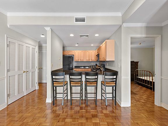 Welcome to your urban oasis just half a mile from the vibrant Hoboken PATH station! This stunning 2 bed, 2 bath approx 1071 s.f. condo offers the perfect blend of comfort and convenience. As you step inside, you're greeted by the warm embrace of hardwood parquet flooring, creating a timeless elegance throughout the space. The kitchen is a chef's dream, boasting granite counters, a breakfast bar for casual dining, and sleek stainless steel appliances. Recessed lighting illuminates the living area, enhancing the modern ambiance. The bedrooms are generously sized, providing ample space for relaxation and rest. With a washer/dryer conveniently located in-unit, laundry day becomes a breeze. Say goodbye to parking woes with your own deeded garaged spot for one car. Plus, enjoy the benefits of low maintenance fees, making homeownership a hassle-free experience. With central HVAC ensuring year-round comfort, you'll feel right at home in any season. Explore the neighborhood's array of great eateries, charming shops, and vibrant nightlife, all just moments away. Don't miss this opportunity to live the Hoboken lifestyle to the fullest!