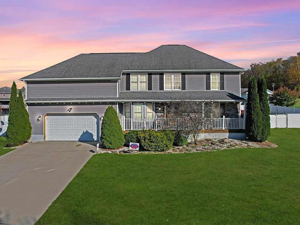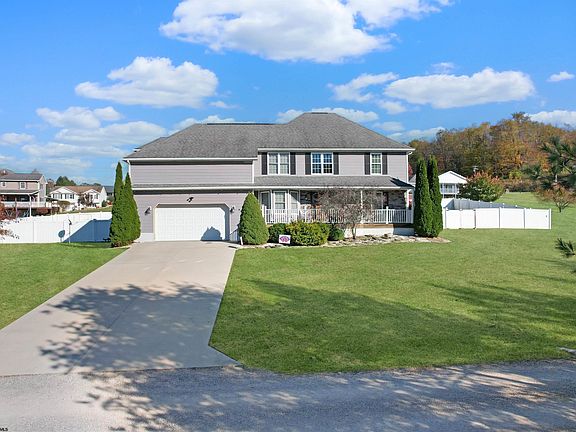 Welcome to Brandon Meadows! This beautiful stone-and-vinyl two-story home sits on 0.55 acres and offers wonderful curb appeal along with a spacious fenced-in backyard. A large covered front porch welcomes you inside, where the main level features hardwood floors throughout. The first floor includes a large office with French doors, a formal dining room, a half bath, and a generous kitchen with pantry and a cozy breakfast nook overlooking the spacious gathering room. Step right out onto the back deck to enjoy the privacy of the yard—perfect for relaxing or entertaining. Upstairs, you’ll find a massive primary suite with a tray ceiling and an en-suite bath complete with a jetted tub and double vanity. Two additional bedrooms, a full hall bath, an upstairs laundry room, and a huge bonus room provide abundant living and storage space. The home also offers a full unfinished basement with exterior access and over 900 sq ft ready for customization, along with a 2-car attached garage. Conveniently located near I-68—just 15 minutes to Hazelton and 25 minutes to Morgantown—this home combines peaceful living with easy access to surrounding amenities. Call Today