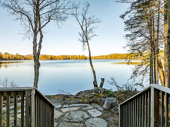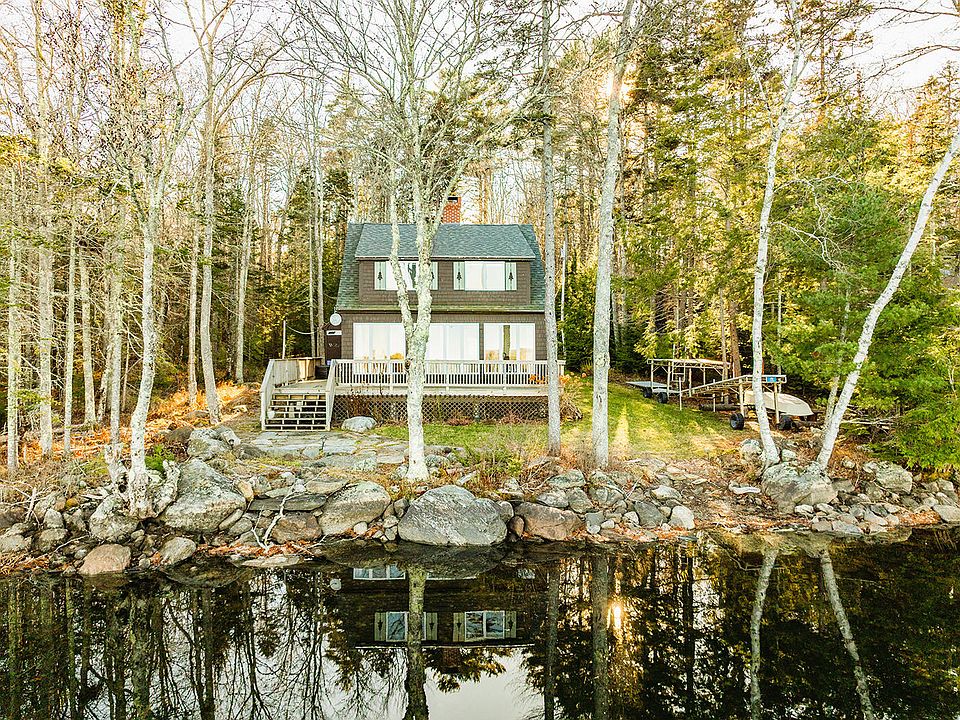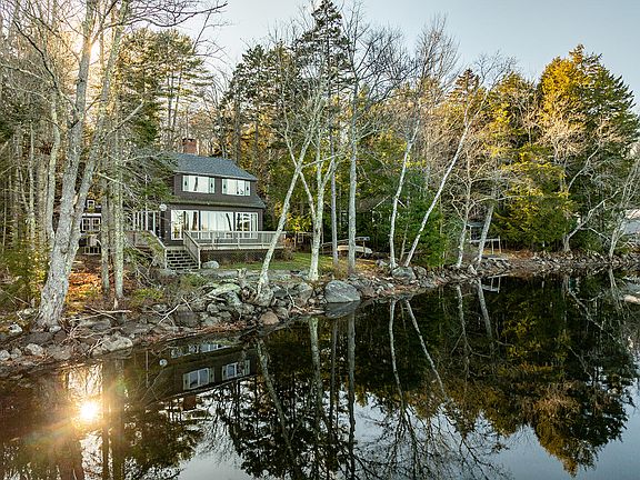 Discover the charm of this cottage-style home offering year-round lake living. The main level features an open living room highlighted by a rock fireplace, a galley kitchen with a woodstove, and a convenient half bath. Enjoy the outdoors on the wraparound deck, which overlooks the patio and fire pit right on the shore. Upstairs, you'll find two spacious bedrooms and a renovated full bath. The property also includes both a versatile bonus building that could serve as a bunk house or small studio space and a detached two car garage. Situated at the very end of the road, the location provides excellent privacy. A private dock is perfect for swimming, boating, fishing, and relaxing by the water.