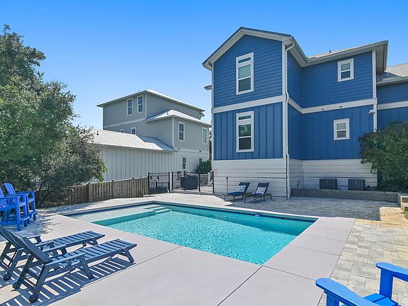 LET'S GO TO THE BEACH....HOW ABOUT SOME SEAFOOD......WHO'S UP FOR EXERCISE? Fantastically located just .25 miles from the beach and one of the most celebrated seafood restaurants on 30a. Factoring in the 20-mile multi-use path, there's no lack of potential fun within this luxury residence.From curbside the house, landscaping and driveway showcase a stately appeal that would make any owner proud. Moving onward towards the home, a welcoming wrap-around porch on both levels provides an invitation to relax and take in paradise. This home was taken down to the studs in 2018 and new Hardy plank siding, windows, doors and railings were used to rebuild and freshen up. Steps descending from the porch open up a stunning, newly constructed pool area that's enclosed by a fence allowing for privacy and security (a dog lover's paradise!). Perfectly sized for entertaining.