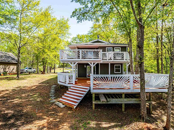 The absolute best lake lot you will find on Sinclair. Deep water (10 to 12 feet) to jump and play in the lake all season, long views because you're on an elevated point, and just go around the corner into Skier's Cove for some great runs. If you just want to be outside in this tranquil, natural environment, the massive 2 level deck might be your spot. This 5 bedroom lakefront home was custom built and designed to be low maintenance so you could spend your time on the water and not working on another property. The roof, hvac, windows have all been replaced in the last few seasons. The Holiday Shores community has a fantastic amenities package with a clubhouse, pickleball court, basketball court, playground, pavilion and one of the only boat launches on that corner of the lake. Whether its a fun weekend getaway or your next home - this community has it all and is perfect escape from the hustle and bustle of daily life. Lots of trees and nature, space to breath and some of the cleanest and nicest water of any lake in Georgia. Home will be conveyed mostly furnished so just come right to the lake.....