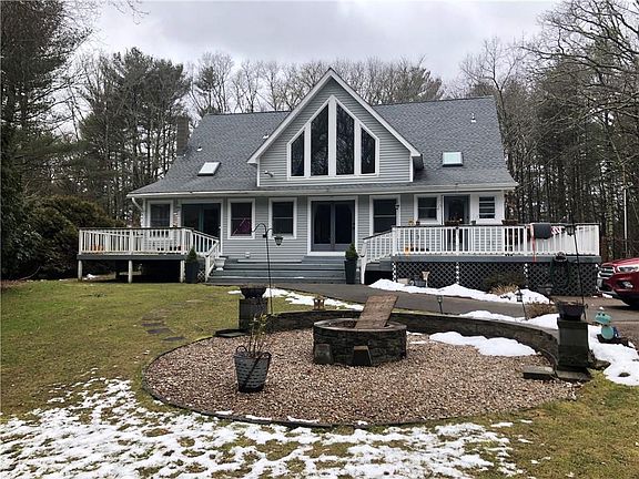 Enjoy country living in a desirable low tax town. Less than 10 miles to beautiful Charlestown Beaches, close to Burlingame State Park for swimming and camping and Yawgoo Valley Ski Area. This 2X6 construction home sits on approximately 2 acres, with a variety of fruit trees, fire pit, chicken coop and a large rear deck for entertaining. First floor primary bedroom and private bath leading into a sunroom. Cathedral ceilings in great room with a freestanding pellet stove. Open floor plan with hardwoods, carpet and tile. Sip your morning coffee on the spacious covered front porch overlooking a wooded lot.
