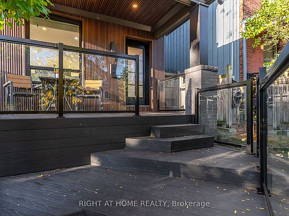 Corner lotPanoramic skyline viewsModern two-storey rear additionSerene landscaped backyardContemporary finishesRefinished hardwood floorsExposed brick accents
