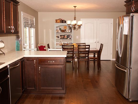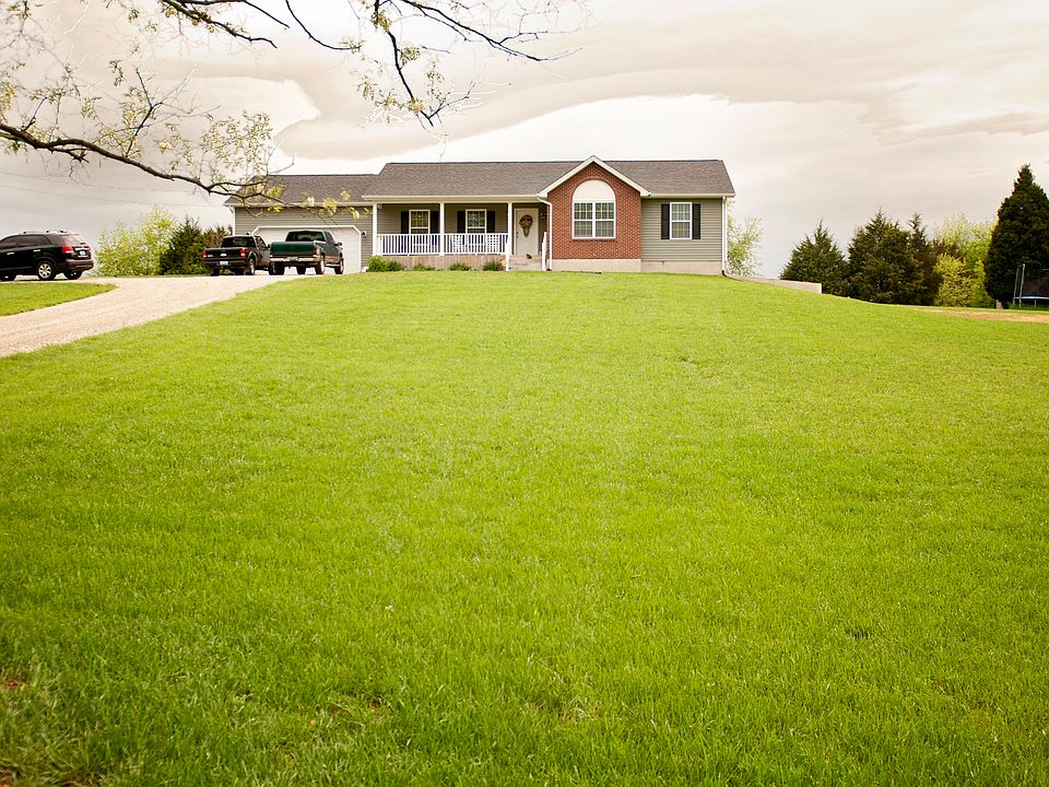 Beautiful open floor plan home has gorgeous upgraded hardwood floors. This ranch style house is built on just under 2 acres in a great neighborhood, convenient to Louisville, Ft. Knox, Elizabethtown, and Brandenburg. Just minutes from Dixie Hwy and 313. Tons of storage space! Large laundry room right off garage entry! Nice Upgrades Include: - Hardwood Floors - New railing on decks - Rough-in bathroom in unfinished walk-out basement - Stonewall ventless fireplace - Spacious storage building (16x10) - Nice, maintenance free landscaping - Stainless steel Samsung kitchen appliances
