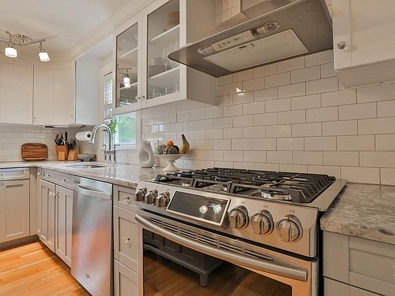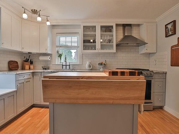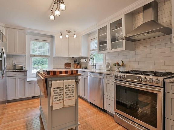 A true Storybook Home - Enchanted cottage home, with charm and modern flair. You'll notice the attention to detail in the updated vintage designed kitchen with modern flair: painted cabinets, subway tile, quartzite countertops, stainless steel sink, and updated stainless steel appliances, along with functional mudroom leading to a private fenced in backyard; truly, a place you and your favorite four legged friend will love. The living room is large enough to accommodate two furniture arrangements, especially sitting in front of the warm gas fireplace. There is a lot of heart of soul to enjoy in this house. The master bedroom is comfortable, relaxing and interesting. An additional alcove over to the side serves as a private office area; and the high ceilings enhance more spaciousness to the already ample-sized bedroom. Stained pre-finished floors add to the ambience of the home. This home has understated elegance in a convenient country setting close to Routes 95 and 133