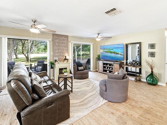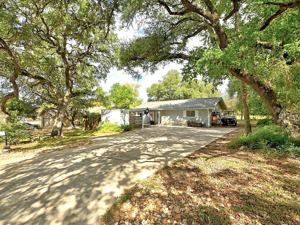 Located on the beautiful Double J Ranch Golf Club course, this charming, updated 2 bedroom, 1 bath home is a must see. Whether you're inside the home or relaxing on the updated patio, the open floor plan makes great use of space and offers delightful views of the trees and golf course. The home features marble countertops, stainless steel appliances, laminate flooring, recently updated carpet in the bedrooms and a bidet. Fresh paint throughout gives the home a bright, updated feel. Surrounded by large majestic oak trees, this property offers both comfort and natural beauty. Just minutes from the clubhouse, Cypress Falls Swimming Hole, and downtown Wimberley's shopping and restaurants - this is Hill Country living at its best!