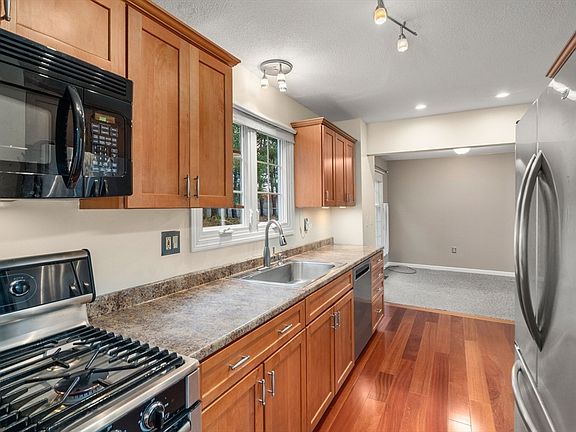 Wood-burning fireplaceCentral airForced-air gas heatPrivate deckCozy family roomAttached one-car garageUpdated kitchen