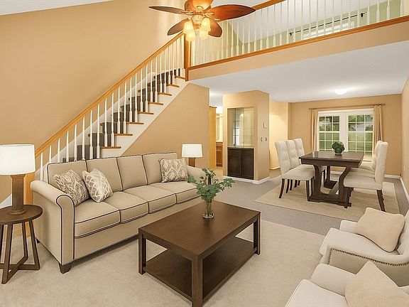 Welcome home to this beautifully maintained and spacious end-unit condo! Some great features include: An open concept living & dining room area, an updated kitchen with hardwood floors, cabinets, and countertops, all appliances included. Just off the kitchen leads into a convenient washer-and-dryer laundry room. A large, airy vaulted loft connects two generous sized bedrooms, each with its own private bath. Additional highlights include central air (approximately two years old), large windows, a walk-in closet and shower, recessed lighting, a cozy family room with a wood-burning fireplace, and a flexible 3-to-4-bedroom layout. Enjoy forced-air gas heat, ceiling fans, sliders to a private deck on a desirable corner lot, and an attached one-car garage. The full, dry, open basement offers endless potential for a game room, hobby area, or extra storage. Conveniently located near the Massachusetts Pike entrance, this bright and welcoming home is truly a pleasure to see!
