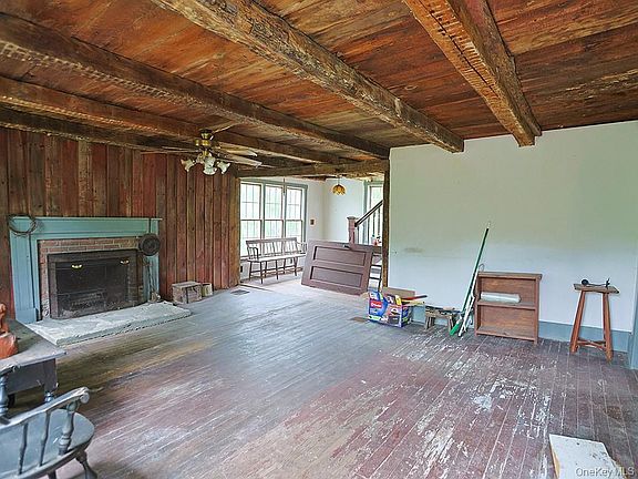 Listed with an effective date of 1900, but this home has stood for generations longer. Ready for restoration, it offers solid bones, hand-hewn beams with bark still intact, wide-plank floors, and a classic brick fireplace — over 125 years of craftsmanship you can’t recreate today. The property offers privacy, mature trees, and a peaceful country setting.