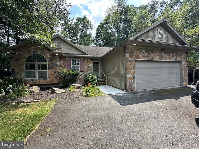 Beautifully maintained ranch home w/ stone exterior, open floor plan w/ vaulted ceilings. Large stone fireplace in family room, open to the dining room/kitchen. Primary bedroom features a lg walk-in closet, whirlpool tub nestled into the corner w/ custom wood trim surrounding, New flooring and kitchen countertops plus new Heating system and paint , plenty of storage, 20x20 garage w/ additional wiring for machines, lg basement could be finished for additional living space. A gardeners dream, amazing landscaping! Don't miss this one!