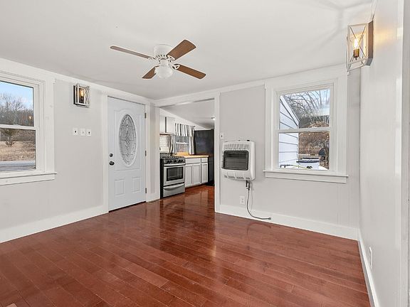 This darling house received a lot of TLC. The owner renovated almost the entire interior. It has a new kitchen, bath, floor refinishing and new sconces in LR and DR, new windows and closets in the spacious two bedrooms. The spacious and insulated garage is below the 2nd level with an indoor and exterior entrance. Laundry and a great work bench is located in this very dry and warm space. The land undulates down to a wooded area and ravine. 15 Minutes to Millerton, Pine Plains and Copake, New York.