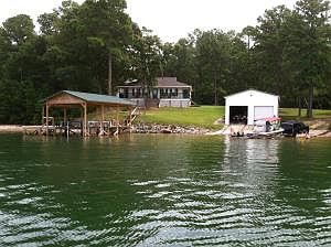 A great lake place with a 2 million dollar view!! Sand almost completely covers the +- 350 feet of shoreline. The view is fantastic. Huge boat house with concrete ramp, pier w/covered boat slip and lift, large 3 car garage in road side of house with room overhead for guest quarters or storage. House is in great shape. Porch across lake side to take advantage of water and view!! Priced to sell!