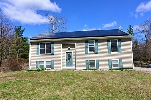 Sun filled, updated home in oversized 4.5 acre lot, perfect for horses and homeowners seeking privacy. Home features updated kitchen with granite counters, stainless steel appliances, farmers sink and door opening to deck with expansive views of massive property, hardwood flooring, three full baths, four bedrooms, family room in walk out lower level with pellet stove. Additional features include new 4-bed septic (2017), new heat and central a/c and water filtration system. Property is perfect for horses and for homeowners looking for an oversize, flat lot with room for just about anything. Solar panels generate enough electricity to supply home's electric needs including heat and a/c.. Electric bill is zero every month.