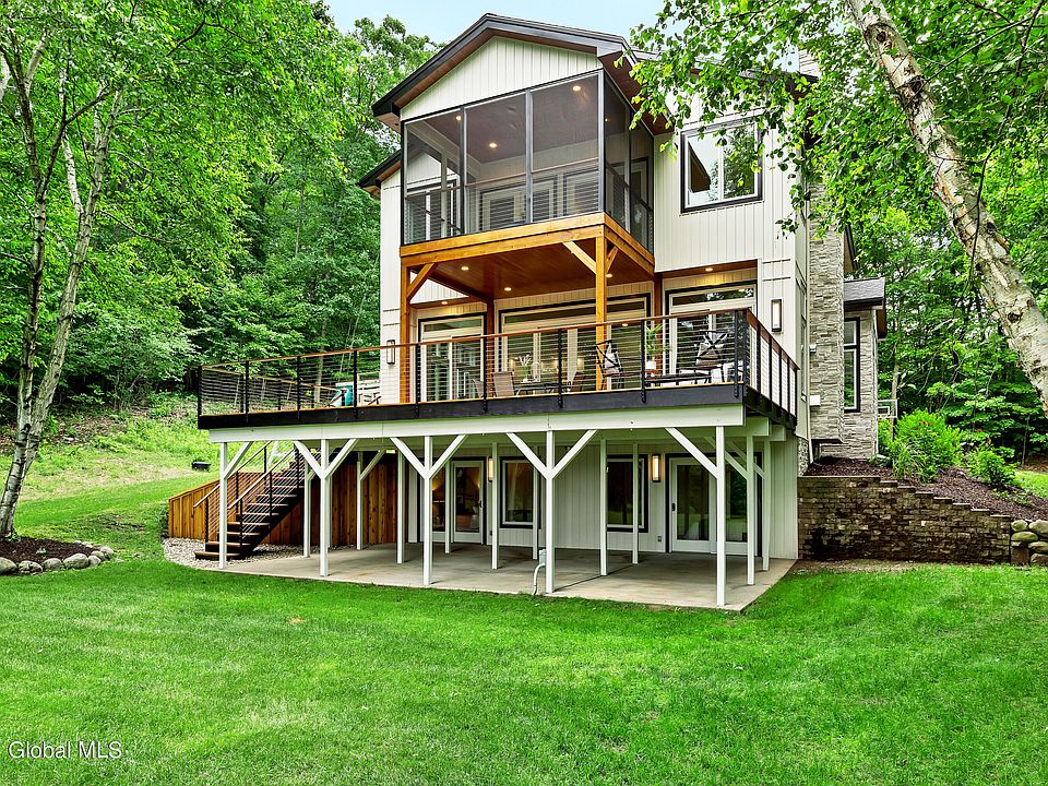 Indulge your lake lifestyle in this meticulously renovated 5 bedroom, 4 bath lakefront home Nestled on just under 5 acres. The luxurious living spaces and impeccable craftsmanship is evident throughout, from the modern exterior, to the gourmet kitchen to the spa like primary bathroom with wifi steam shower. No detail was overlooked. Entertain effortlessly in the expansive great room that offers style and comfort with a wall of glass opening to your spacious deck with stunning lake views. Take in the scenery from your private sand beach or relax on your dock and embrace waterfront living at its finest.