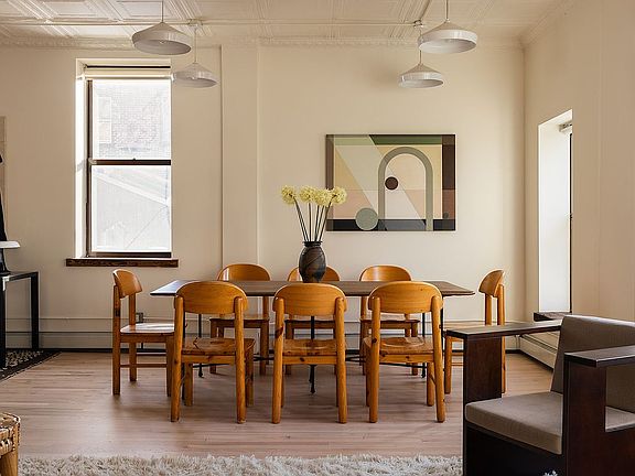 Loft 4F at 84 Forsyth Street is a quintessential condo loft moments from the epicenter of the coveted Lower East Side. The home's spacious floor plan is flooded with light through eight oversized south and west-facing windows from mid-morning until golden hour. Across the street, a park with mature trees and plantings enables a bucolic treetop vista from the home's great room. Other classic loft details -- masonry walls, 10' tin ceilings, rough-hewn wooden sills -- complement modern upgrades made by the current owner.