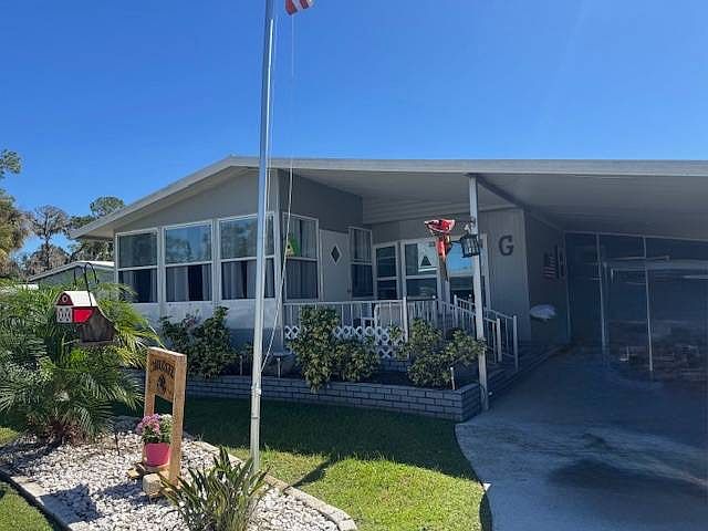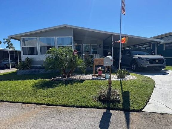You will LOVE this warm and inviting 2-bedroom, 2-bath oasis located near Lake Shipp, a natural freshwater lake, on the Chain of Lakes in beautiful Winter Haven, Florida! Over 1000 sq ft.of living space. Get ready for some fun in the sun in this lake community with so many lakes at your fingertips! Welcome home to this stylish residence with lots of character. Lovely tropical landscape and curb appeal draw you into this humble abode. The charming faux fireplace sets the mood for a relaxing atmosphere and ambiance. Kick back for a quiet evening or entertain with friends and neighbors. Attractive wood plank flooring runs throughout the home, while the walk-through kitchen is equipped with all essential Stainless Steel appliances, and the adjoining dining room is spacious enough for sit-down meals. The expansive master bedroom includes an en suite, and the guest bedroom is currently used as an additional family room/guest bedroom. Meander to the front enclosed Florida room for additional living space with plenty of windows and/Or screens for natural light and fresh air. On the exterior, the large carport has room for an outdoor patio under shade, enclosed porch where the washer/dryer is located for your convenience. Take advantage of the HUGE shed/workshop for all your hobbies as well as storage. Two additional storage units are located next to the attached shed. A front patio as well is welcoming with views of the community.Lifetime Metal roof. Whether you are looking for a full-time home or a seasonal getaway, this is the perfect opportunity and the ideal location in Central Florida. Explore the vibrant city with lots of LAKES for fishing and water activities. Travel in either direction to world-famous attractions such as Bok Tower Gardens, Busch Gardens, Disney World, Lego Land, Sea World, Universal Studios, and sugar-white beaches on the Atlantic or Gulf Coasts. International airports are accessible in Orlando or Tampa. Additional essentials include grocery stores, health facilities, banks, and businesses nearby. Enjoy adventures, shopping, dining, and touring this magnificent area! LOW LOT Rent of $475 per month. Shipp-Reck Harbor MH Park is a 55+ GATED community **Pet-Friendly** (2 small pets) offering resort-style amenities: Clubhouse, Swimming pool, Recreational facilities, laundry building with plenty of table space, Billiards, Library, and planned social activities. Now is the time, and this is the place. Don't wait, call today! All listing information is deemed reliable but not guaranteed and should be independently verified through personal inspection by appropriate professionals. Our company does not and cannot guarantee or warrant the accuracy of this information or the condition of this property. Measurements are approximate. The buyer assumes full responsibility for obtaining all current rates of lot rent, fees, and pass-on costs. Additionally, the buyer is responsible for obtaining all rules, regulations, pet policies, etc., associated with the community, park, or home from the community/park manager. Our company is not responsible for quoting said fees or policies. Financing is available through 3rd party lenders. The sales price does not include tax, dealer fees, or administrative fees. Please contact the sales agent for additional information.
