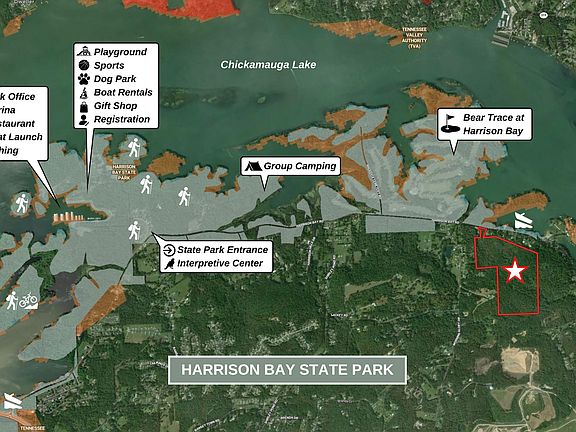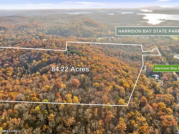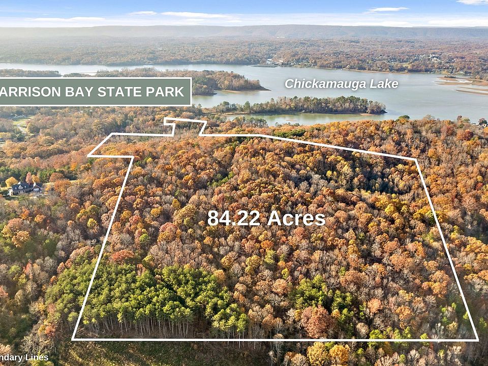 Expansive 84.22± ACRE parcel offers a rare opportunity for developers, investors, or those seeking a private, SCENIC ESTATE. Whether you're looking to create a unique RESIDENTIAL DEVELOPMENT or a personal retreat with ample space for hunting, preservation, and conservation, this property provides numerous possibilities. Situated at the border of HARRISON BAY STATE PARK, a 1,200 acre park with approximately 40 miles of Chickamauga Lake shoreline. This beautiful wooded park is a haven for campers, golfers, boaters, and fishermen, as well as picnickers and visitors. BREATHTAKING SCENIC VIEWS with elevated ridges offer spectacular panoramic views of Harrison Bay, Chickamauga Lake, and surrounding mountains. Whether you're enjoying the views from your future home or envisioning a subdivision, this land offers an incredible setting. ABUNDANT WILDLIFE including deer, wild turkeys, and small game, make this acreage ideal for nature lovers and outdoor enthusiasts. This property is directly adjacent to Chickamauga Lake, a Bill Dance Signature Series bass fishing lake, and close to a state marina, boat ramp, restaurant, and Bear Trace Golf Course. Its prime location makes it perfect for either a residential development or a private estate, combining privacy with easy access to major cities and amenities. Convenient access to Hwy 58, Hixson, downtown Chattanooga, and Cleveland. Just 20 minutes to Chattanooga Airport. Within 2.5 hours to southern hubs like Nashville, Knoxville, and Atlanta. This 84.22+/- acre parcel offers the perfect combination of natural beauty, convenience, and privacy. Seize the rare opportunity to unlock the full potential of this incredible land! Schedule your private tour today (property is gated). (Any and all property lines on photos are simulated and are approximate. Some images may be virtually staged. Buyer is responsible to do their due diligence to verify that all information is correct, accurate and for obtaining any and all restrictions for the property deemed important to Buyer.)