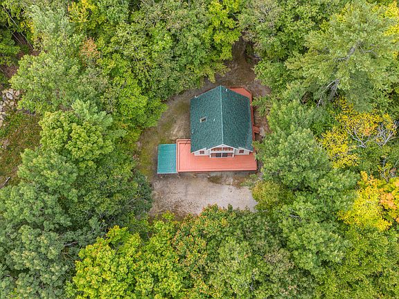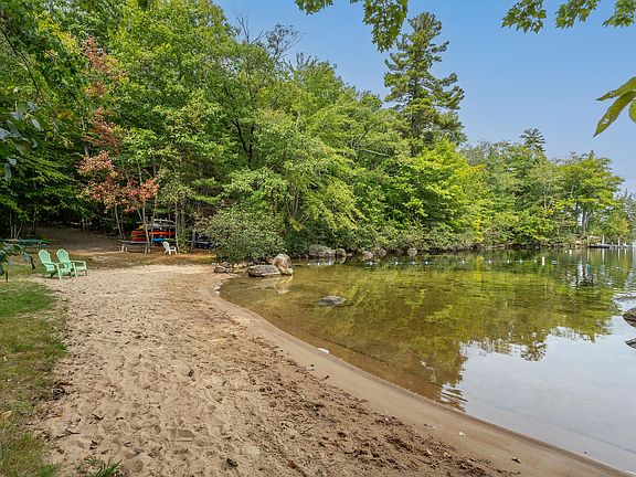 Discover your dream retreat in this spectacular chalet-style home, just steps away from the pristine shores of Thompson Lake! With beautiful cathedral ceilings and exposed wooden beams, the open floor plan creates an inviting atmosphere that is sure to impress. The new hickory cabinets and quartz countertops make cooking a joy. A full wall of glass floods the space with natural light and seamlessly connects indoor and outdoor living. Step out onto the expansive wrap-around deck, perfect for soaking up the sun or enjoying a shaded afternoon. Ideal for entertaining, the gorgeous family room features a full wet bar, and the warm pine walls paired with a large stone fireplace enhance the cozy, lakefront feel. Enjoy rights to two nearby beaches and a convenient boat launch, all just a leisurely stroll from your door. Come visit this enchanting retreat—you may never want to leave!