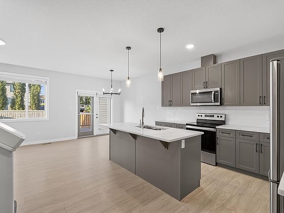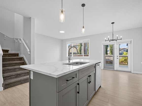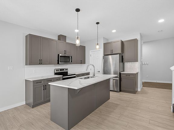 Step into comfort and style in this beautifully kept 2-storey home! The main floor features 9-ft ceilings, an open-concept layout, and a bright great room overlooking the backyard. The island kitchen offers quartz countertops, stainless steel appliances, a corner pantry, and flows easily into the dining area with access to the 10x10 pressure-treated deck. Upstairs, the spacious primary suite includes a walk-in closet and 3-piece ensuite with 5-ft shower. Two additional bedrooms, a 4-piece bath, and upper-floor laundry provide convenience for busy families. The insulated, drywalled double attached garage with opener completes this move-in ready home.