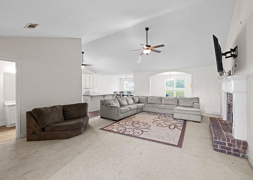 Welcome to this charming Craftsman-style ranch in Thomas Pastures community! This maintained 4-bedroom, 2.5-bath home offers an open-concept layout with cathedral ceilings that create a light, airy atmosphere perfect for everyday living and entertaining. The gourmet kitchen features granite countertops, crisp white cabinetry, a center island perfect for gathering, and a walk-in pantry for extra storage. A separate dining room offers the ideal space for hosting dinner parties or enjoying family meals. The cozy living area features a never-used, brick-accented wood-burning fireplace that blends rustic warmth with modern design. The generous primary suite is a relaxing retreat with a trey ceiling, an oversized walk-in closet, and a spa-inspired en-suite bath offering double vanities, a garden tub, and a separate shower. Nestled in a peaceful, well-kept neighborhood, this home is just minutes from Winder’s shopping, dining, and grocery stores, with easy access to major roads for smooth commuting. Don’t miss this opportunity to own a home in a welcoming community!