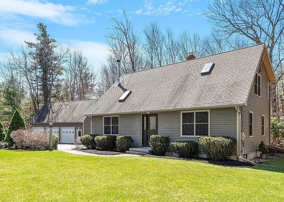 SANCTUARY!!! finds this gorgeous Cobtemporary Cape with soaring ceilings, Enter into the living room cathedral ceilings, wood fireplace and hardwood floors, everythingis light and bright and airy, then on to the open concept dining room with access to deck which runs the length of the house in back, and abuts lots of woods. then U-shaped kitchen which has tile floor and granite counters, and stainless steel appliances. Lastly you'll find 2 bedrooms off the living area. upstairs is your own private en suite primary bedroom with walk in closets and full bath. But the piece de resistance is the heated 3/4 car garage with its own lift which conveys, meander upstairs to a heated room with finished flooring and finished walls, this room could be anything you wish. Easy access to rte 2 for fast commute. Landscaped and irrigation system. True Paradise.