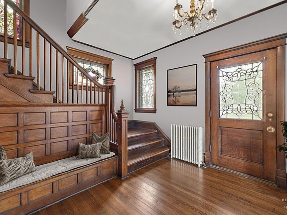 Rare chance to create instant equity in Crystal Lake's desirable downtown neighborhood! Surrounded by other historic homes that have been thoughtfully renovated, this 4-bedroom, 2.5-bath property offers unmatched character and incredible potential. Features include soaring ceilings, hardwood floors, stained and leaded glass windows, and a brand new roof (July 2025). The main floor includes formal living and dining rooms, a gas fireplace, built-ins, and an updated kitchen with attached office. Upstairs offers three bedrooms plus a separate apartment with private entrance, kitchen, bath, and bedroom ideal for extra income, in-law living, or a reimagined primary suite. A large walk-up attic and wrap-around porch add endless opportunity for expansion. Located just 1.5 blocks from the train and moments from shopping and dining, this is your opportunity to reimagine a historic property in a prime location and build lasting value. Property is also listed as an office listing in the MLS number 12485159.