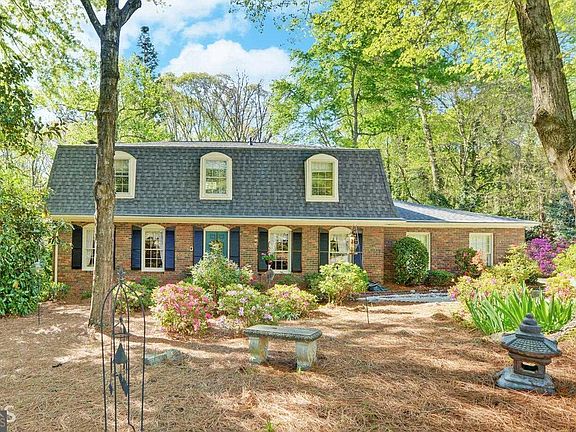 This four-sided brick French Provincial home is nestled in a well-established neighborhood just minutes from downtown Toccoa. A distinctive Mansard roof, inspired by French country estates, enhances the home's elegant facade and creates a warm, welcoming entry. The main level features a foyer entrance, updated kitchen with quartz countertops and a coffee bar, a spacious great room with built-in bookshelves flanking a masonry wood-burning fireplace, a formal dining room, sunroom, study, and a half bath. Beadboard ceilings and recessed lighting add charm and character throughout this level. Upstairs, four oversized bedrooms fill with natural light from abundant windows, accompanied by two full baths. The finished basement offers a second masonry fireplace with gas logs and generous space for entertaining family and friends. Dual HVAC systems serve the main and upper levels for year-round comfort.