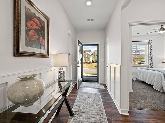 Brookside Farms – Greer, SC  Welcome to Brookside Farms, where rolling hills and mountain views set the tone for everyday living.  Enjoy walking trails that lead to a beautiful clubhouse and open-air pavilion, complete with outdoor fireplace, pools, pickleball and bocce courts, and a playground for the kids.  It’s all just minutes from shopping, dining, and healthcare in the heart of Greer.  This 4-bedroom, single-story home offers a smart split layout with the owner’s suite tucked away for privacy, a flex bedroom perfect for an office, and a bright open kitchen and family room with granite counters, Whirlpool® appliances, and a cozy gas-log fireplace.  A walk-in laundry, covered porch, and Home Is Connected™ smart-home package round out the design.