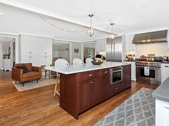 Move right in to this 2017 "like new" Colonial/farmhouse with it's beautiful hardwood walnut stained flooring throughout, top of line stainless appliances and finishes. This five bedroom 6 bath home is situated on a nice corner lot within walking distance to the Mitchell School. The first floor features an open floor plan with a spacious kitchen and large island perfect for entertaining.Top it off with a great room with a gas fireplace leading out to a lovely deck, a formal dining room, a bedroom, full bath and mudroom with a radiant heated tile floor. Go upstairs to a laundry room, 4 nice sized bedrooms including the Master suite, with his and hers professionally organized closets and oversized master bath complete with a radiant heated marble floor. Walk to town as well as easy highway access.