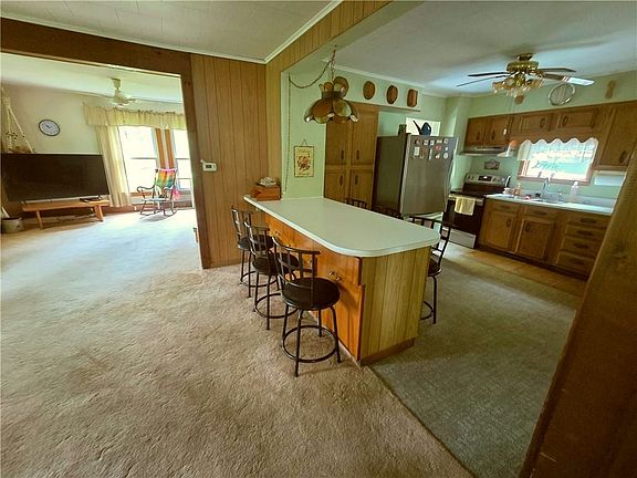 Overlooking the East Branch of the Delaware. This fine home has 3 bedrooms and large open living and dining areas. Located a short walk from downtown Hancock, yet set up a bit from the road affording privacy. Metal roof covers the main house for years of low maintanence. Kitchen has a breakfast bar and newer appliances.