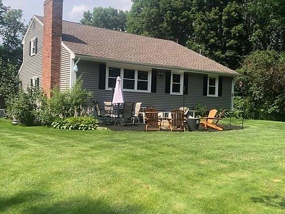 This well cared for Saltbox Colonial has panoramic views of Pinecrest Golf course and is a 5 min walk to the High School. A great floor plan w/vaulted ceiling allows for a spacious feeling in the fireside Family Rm and Dining area with open staircase to the 2nd floor. The Kitchen was completely remodeled in 2013 with ss appliances, granite counters, tiled flooring and cozy breakfast nook w/stools. Step down into the Living Room (or home office) with half bath and access to the side deck & yard. The 2nd floor offers 3 good size bedrooms and a full bath. Hardwood flooring is through-out. A bonus room in the basement offers a built-in bar and access to the backyard which is ideal for gatherings inside and/or out. Also, lots of storage, a utility room and laundry. Major updates include: New heating (including chimney liner) and A/C, Vinyl Siding and Windows and remodeled Bonus room in basement all completed in 2017. Roof and Septic System approx 12 yrs old.