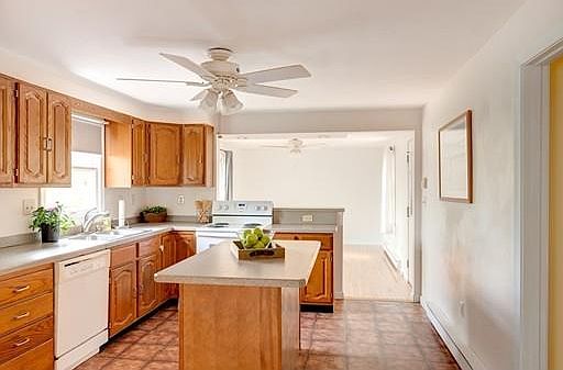 - Kit Dscrp: Flooring - Vinyl, Breakfast Bar / Nook, Kitchen Island
