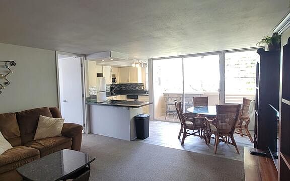 2nd floor, two bedroom, two bath Bayshore Towers Condo with views of the Pacific and lush Hawaiian greenery. Lots of windows for your comfort. Beautiful tropical atmosphere, unique and cheerful. Electricity, water, WIFI & Cable included. Assigned parking. Building amenities include: Pool, Security Building, Resident Manager, Library, small Gym & Laundry on-site. Walk to beaches, parks, downtown. NO SMOKING, NO PETS.