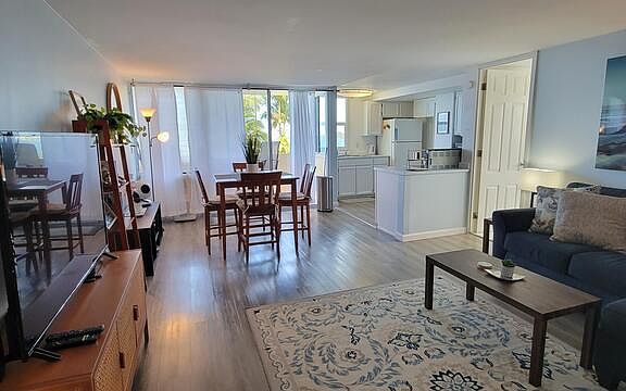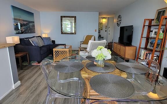 FULLY FURNISHED two bedroom, tow bathrooms. Flat screen TV, kitchen table and chairs, lamps, sheets, towels, and dishes, etc. Electric, water, sewer, cable, wireless, high-speed INTERNET, trash included. Building amenities include: Pool, Security Building, Resident Manager, Library, small gym & Laundry on-site. Walk to beaches, parks, golfing, downtown. NO SMOKING, NO PETS. Appropriate taxes to be applied.