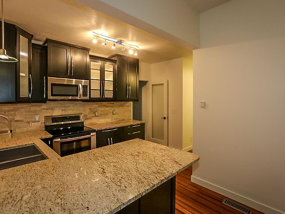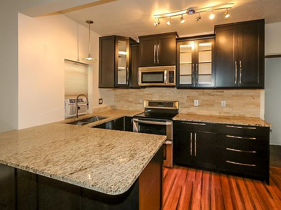 Sleek and clean 2 bedroom unit with Den. Hardwood Flooring, New Carpet. 42 inch Espresso finish cabinets, Granite counter tops and stainless appliances. Nice, well lite bathroom, Euro Shower. Great use of space throughout. Your own private patio. Newer washer and dryer on site. Open parking in back. Water $25.00 monthly. Call for a showing, Erica Ekstrom, Marquis REPM $150 lease initiation fee. One Year Lease with $1,750 Refundable Deposit. No Pets, No Smoking
