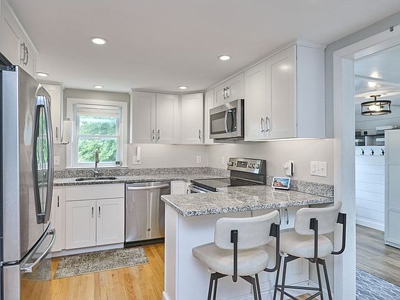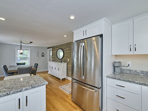 *** Offer Deadline is Wednesday 9/3 at noon! *** Lovely Cape with fully remodeled mudroom steps into modern kitchen open to dining w/oak hardwood flooring. Interior updates include shiplap accent walls and Z-Wave smart switches throughout. Upgraded 200amp electric and ethernet wiring. The current owners have made several upgrades and enhancements; Craftsman exterior doors and storms. New roof (2021). New gutters. Insulated eaves and knee-walls. Oil tank replaced with a Roth stainless double-wall. Added patio (35’ x 16’) with a striking metal pergola with adjustable slat roof (2023) - perfect for entertaining. Updated fencing and gate, leveled yard for a pool and putting green. The garage features awesome storage cabinets, stainless workbenches, a 100-amp sub-panel, and EV charging both inside and out. Bonus: basement play space or home office, gym space and laundry. Every detail reflects pride of ownership, from smart lighting to storage solutions. Commuter friendly. Welcome home!