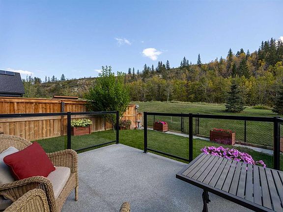 Welcome to Riviera Court — where timeless design meets river valley serenity in one of Cochrane’s most desirable neighbourhoods. This beautiful mountain-inspired villa duplex by Jayman Built captures the feeling of Mountain Side living, surrounded by mature trees, the Bow River pathway, and luxury craftsmanship at every turn. From the moment you arrive, you’ll notice thoughtful upgrades throughout. The exterior features gemstone lighting that adds an elegant glow to the evening skyline and an electric retractable awning that shades your east-facing deck overlooking the protected nature reserve. Pride of ownership is evident from the curb appeal to the immaculate interiors. Step inside to discover an open-concept main floor designed for both comfort and sophistication. The kitchen showcases classic white shaker cabinetry, quartz countertops, and stainless steel appliances, perfectly complemented by a large central island that anchors the space. The adjoining great room is warm and inviting, featuring a gas fireplace and peaceful treed views as your backdrop. A dedicated den on the main floor makes the perfect home office or reading space, and a spacious dining area sets the stage for family gatherings. The primary suite feels like a private retreat, with a large walk-in closet that will exceed your expectations and a beautiful ensuite featuring dual vanities, an oversized shower, and a relaxing soaker tub. Every finish feels intentional, creating an atmosphere that blends elegance with everyday function. Downstairs, the fully finished lower level offers incredible flexibility with two bedrooms, a private office, and a large recreation room, ideal for movie nights, hosting guests, or multi-generational living. Though not a walkout, this level is bright, spacious, and exceptionally well-planned, providing comfort for both family and visitors alike. Additional highlights include a heated garage with epoxy-coated floors, wide-plank hardwood, and triple-pane windows. Step outside to enjoy your east-facing backyard that greets the morning sun, where gemstone lighting and the surrounding forest create a serene retreat. The Bow River pathway system is only steps away, offering endless opportunities for morning walks, evening bike rides, or simply enjoying the calm of nature right outside your door. This quiet enclave in Riviera is known for its friendly neighbours, pristine streetscapes, and proximity to Cochrane’s best amenities. Here, you’re minutes from downtown Cochrane, schools, parks, and golf, while still being surrounded by the peace and beauty of the natural landscape. If you’ve been searching for a home that combines mountain-inspired style, luxury finishes, and the tranquility of riverside living, 84 Riviera Court is the perfect place to call home.