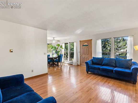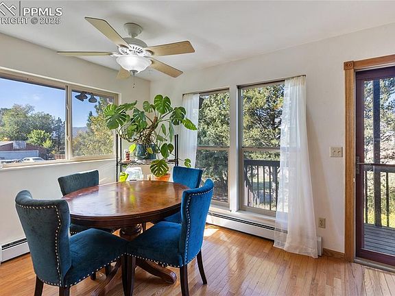 Welcome home to this charming and tastefully updated downtown Monument retreat perfectly blending cabin character with modern comfort. Ideally situated on a spacious corner lot this home captures the true essence of small town living with lilacs, mature shade trees, and frequent visits from local deer and wildlife. Step inside to discover a thoughtfully redone interior featuring gleaming hardwood floors throughout the main level and durable LVP flooring in the lower level primary suite. The bright, galley style kitchen shines with stainless steel appliances, ample pantry storage, and a cozy dining nook for everyday meals. The inviting family room, accented with warm knotty pine and anchored by a wood burning stove, sets the stage for cozy Colorado evenings and movie nights. The private, garden-level primary suite offers a peaceful retreat with three closets (including one cedar), a sitting or dressing area, and easy access to the laundry room. Enjoy your morning coffee or evening sunsets from the large west-facing covered porch with stunning mountain views. Outside, the property continues to impress with a generous fenced yard, garden space, and a storage shed perfect for your outdoor hobbies. The oversized 2.5-car detached garage includes a workshop area and alley access, offering plenty of room for vehicles, tools, and toys. Located in the heart of Monument, this home is just a short stroll to dining, shopping, parks, and the beloved “Music in the Park” summer series, blocks away from farmers market and art hop. With easy access to I-25, USAFA, the Denver Tech Center, and top-rated schools, this location is as convenient as it is desirable. This home has been lovingly maintained and skillfully updated over time offering a rare opportunity to own a downtown Monument gem where character, comfort, and charm come together seamlessly. Numerous updates throughout the home and a complete list can be provided upon request. This home wont last book your showing today.