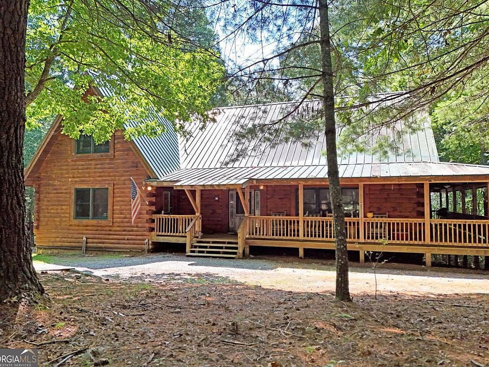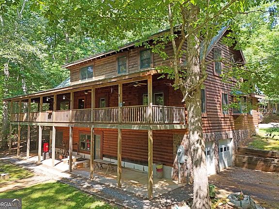 BIG BEAUTIFUL LOG HOME. Over 5400 sq ft including bsmt. 4BR/2.5BA featuring Open Great room with exposed beams, wood burning fplc w/ gas starter, Oak floors, dining area seating for Large table. The kitchen offers an oversized Central island with propane cooktop. Wall oven, wall micro, d/w and fridge. Built in desk and work station. 2 BRs on the main which includes the primary bedroom. Full bath has jetted tub, sep shower, dbl van, bayed feature window . Large walk-in closet. There is a mudroom which has a large bank of cabinets and storage. Upstairs features a large loft overlooking the great room and dining area. 2 spacious bedrooms have vaulted ceilings with exposed beams. Full bath. Full unfinished basement that is stubbed and rough wired, plumbed for a full bath, and has 2 car parking. The entrance porch is a 3/4 wrapped covered porch offering multiple areas for outdoor seating. Gentle 2 acre yard scattered with trees, fire pit area, wood storage shed. Close to Lake Nottely boat ramp off Lake Cove Lodge Rd. Approx 10 miles to town.