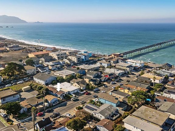 Just a block from the Pacifica Pier and Palmetto Ave with boutique shopping and restaurants, this charming coastal home blends classic beach-house vibes with modern comfort. Wrapped in cedar shingles, it features high-beamed ceilings, abundant natural light, and a welcoming living room with a wood-burning stove. The updated energy-efficient kitchen includes high-end stainless steel appliances, a pantry, and a sunny dining area that opens to the outdoors. A dedicated laundry room offers a washer and dryer and storage cabinets. The primary suite features a spacious closet and French doors leading to a private backyard with a deck perfect for entertaining and enjoying the ocean air. The second bedroom fits a queen bed and has generous closet space. The house is finished with a modern 2nd bathroom. With the beach, cafes, and scenic trails just moments away, this home offers relaxed and convenient coastal living at its finest. Enjoy easy access to Hwy 1 for all your Bay Area commutes.