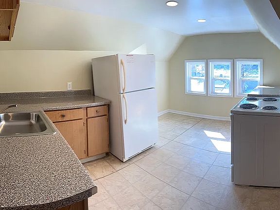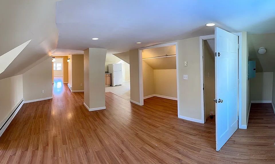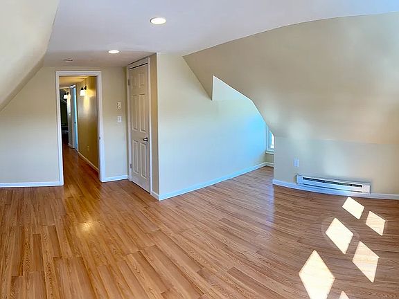 Spacious bedroomRecessed lightingUnique sloped ceilingsWarm wood floorsUpdated flooringFull-size appliances