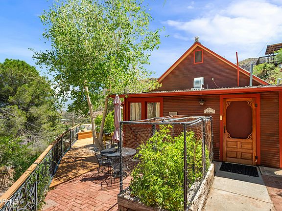 Perched up off of High Rd in Old Bisbee, This 2 bed 1 bath Miners Cabin is lovingly referred to as The Eagles Nest. With views into Mexico, the home has Redwood siding, enormous deck, fully fenced yard, carport, Ben Franklin gas stove, hardwood floors, granite counter-top, lush mature Tombstone Rose and shade trees to enjoy Bisbee's perfect year-round weather. Raised garden beds on the side deck produce everything needed for the salsa!